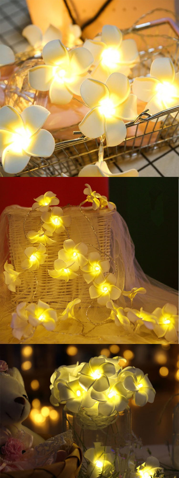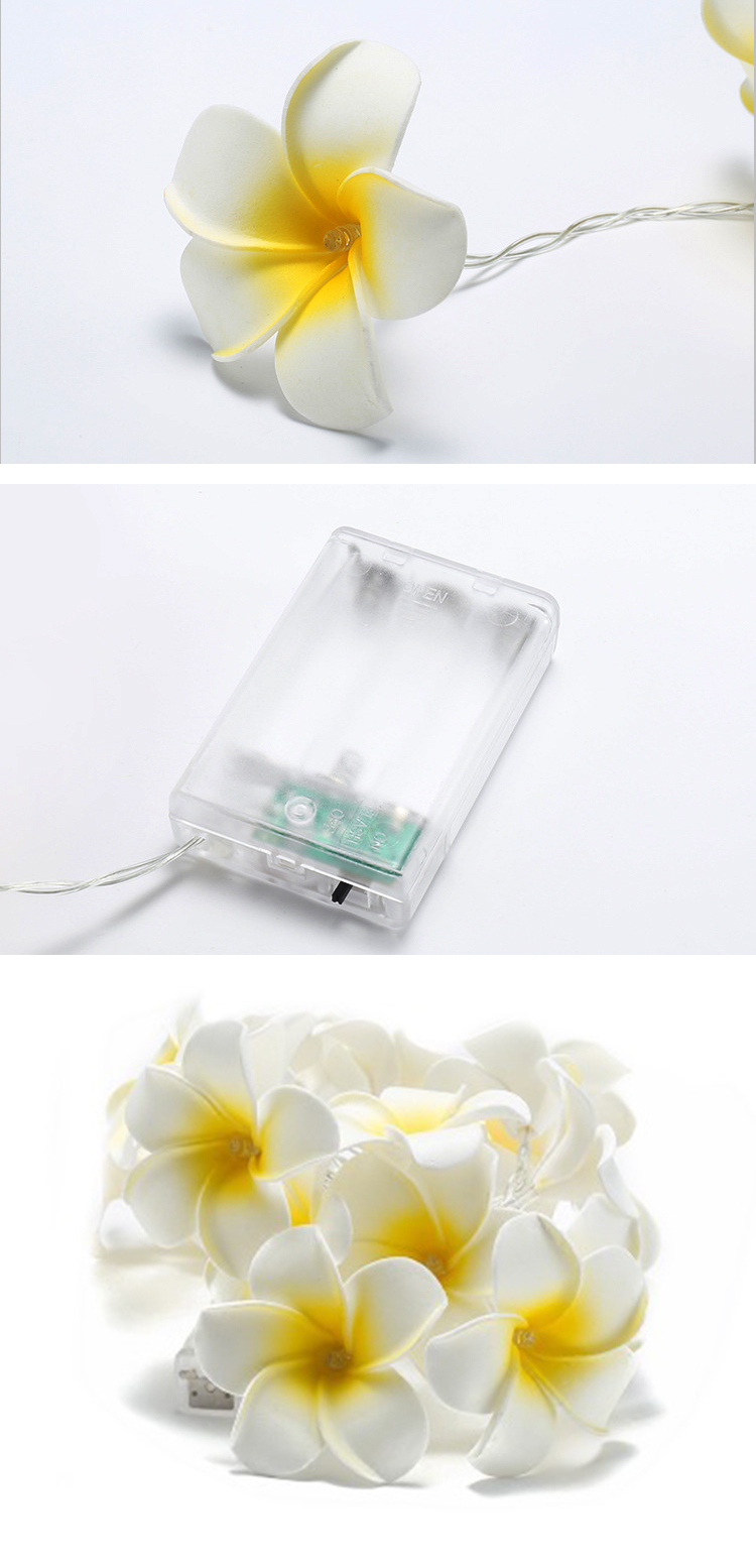 Guirnalda de luces led con batería de boda floral de frangipani de tela violeta blanca Plumeria luces de decoración de dormitorio de fiesta de Navidad