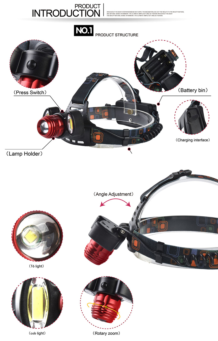 18650 T6 Adjustable direct charge waterproof coj headlamp