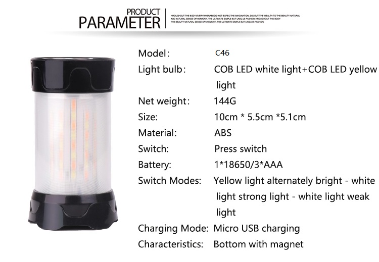 Гадна майхны дэнлүү USB цэнэглэдэг цэнэглэдэг яаралтай галын ландшафтын гэрэл Led явган аялалын доод соронз мини кемпийн чийдэн