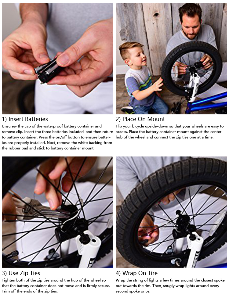 Multicolored Bicycle Accessories Spoke Lamp 3aaa ho kenya betri habonolo ho sa keneleng metsi Led Wheel Wire Bicycle Light