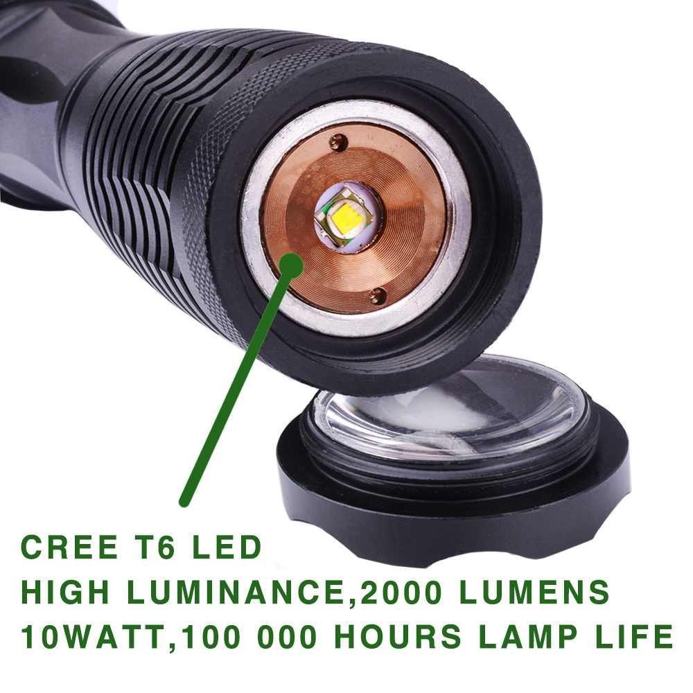 T6 zoomable led torch light,telescopic focus head,attack head sef defense flashlight for emergency el feneri g700 flash light lanternas táticas
