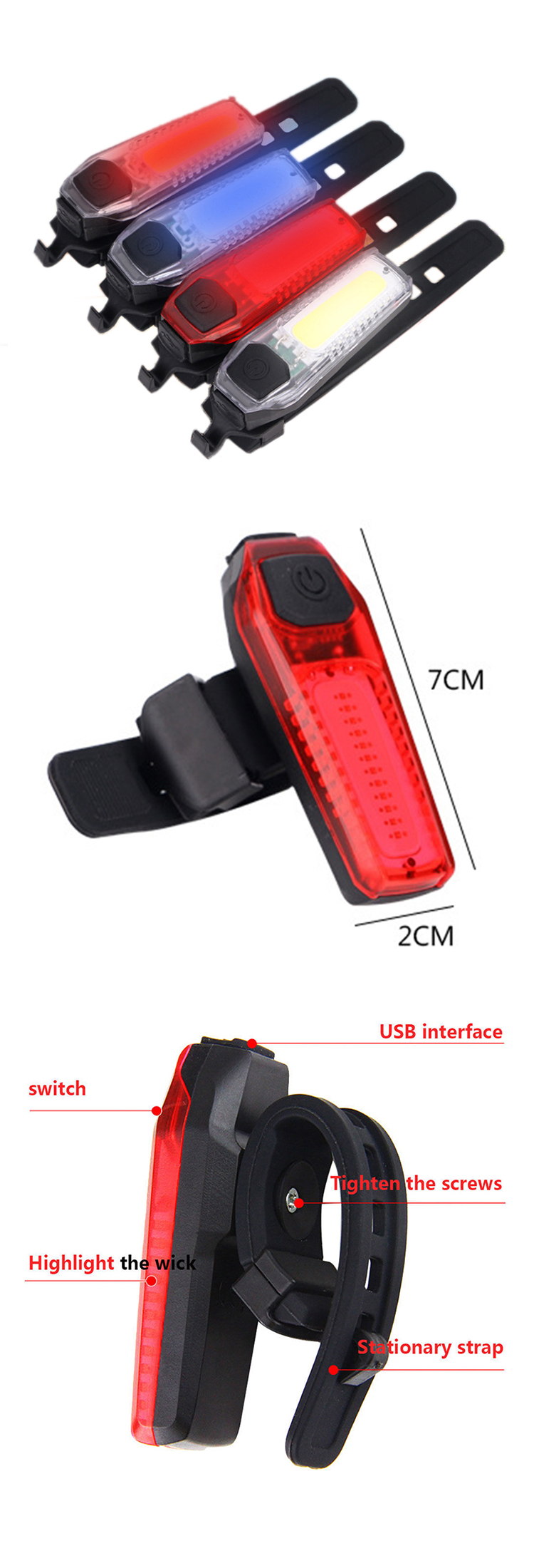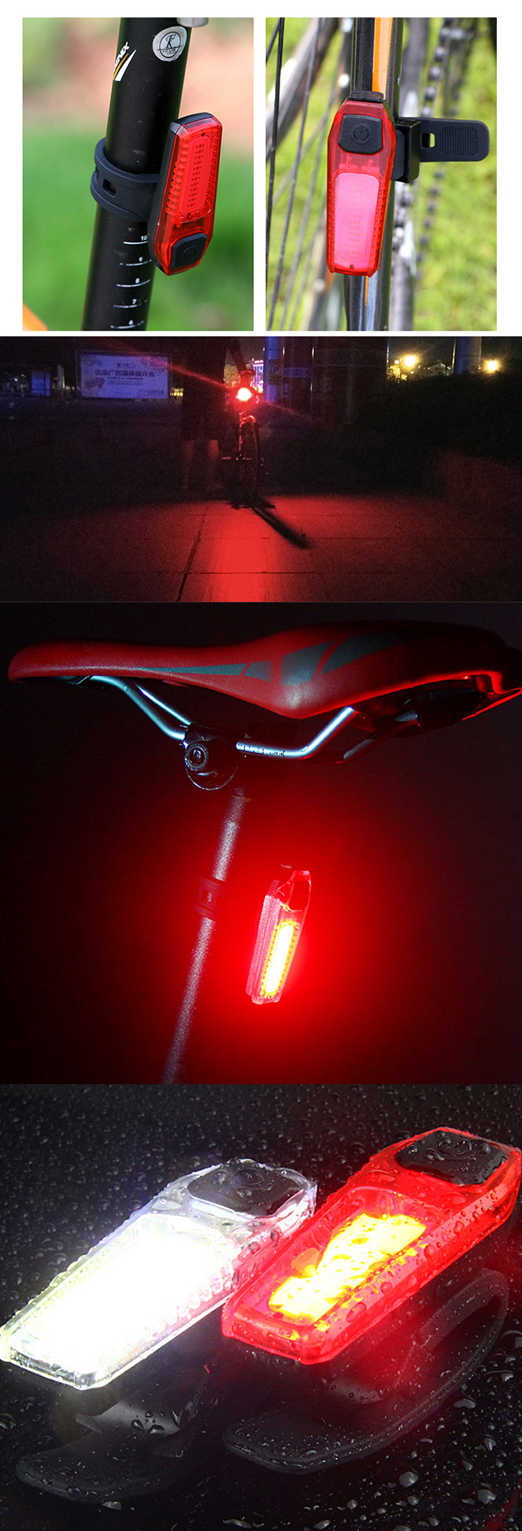 USB Rechargeable Cycling Bike Tail COB LED Light Bicycle Rear Warning Lamp