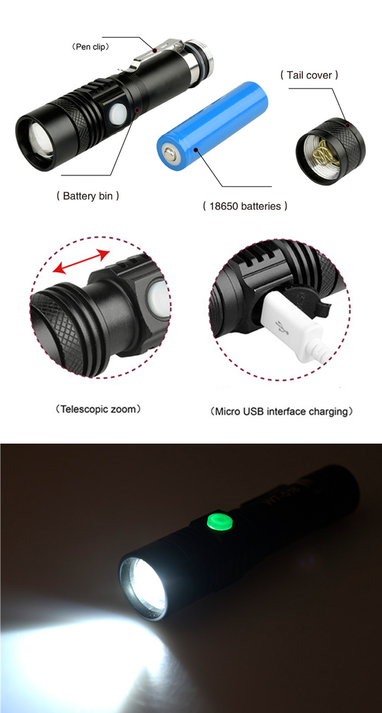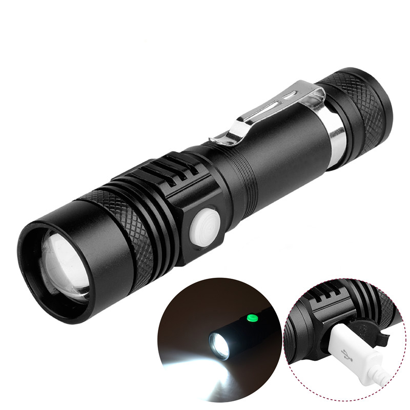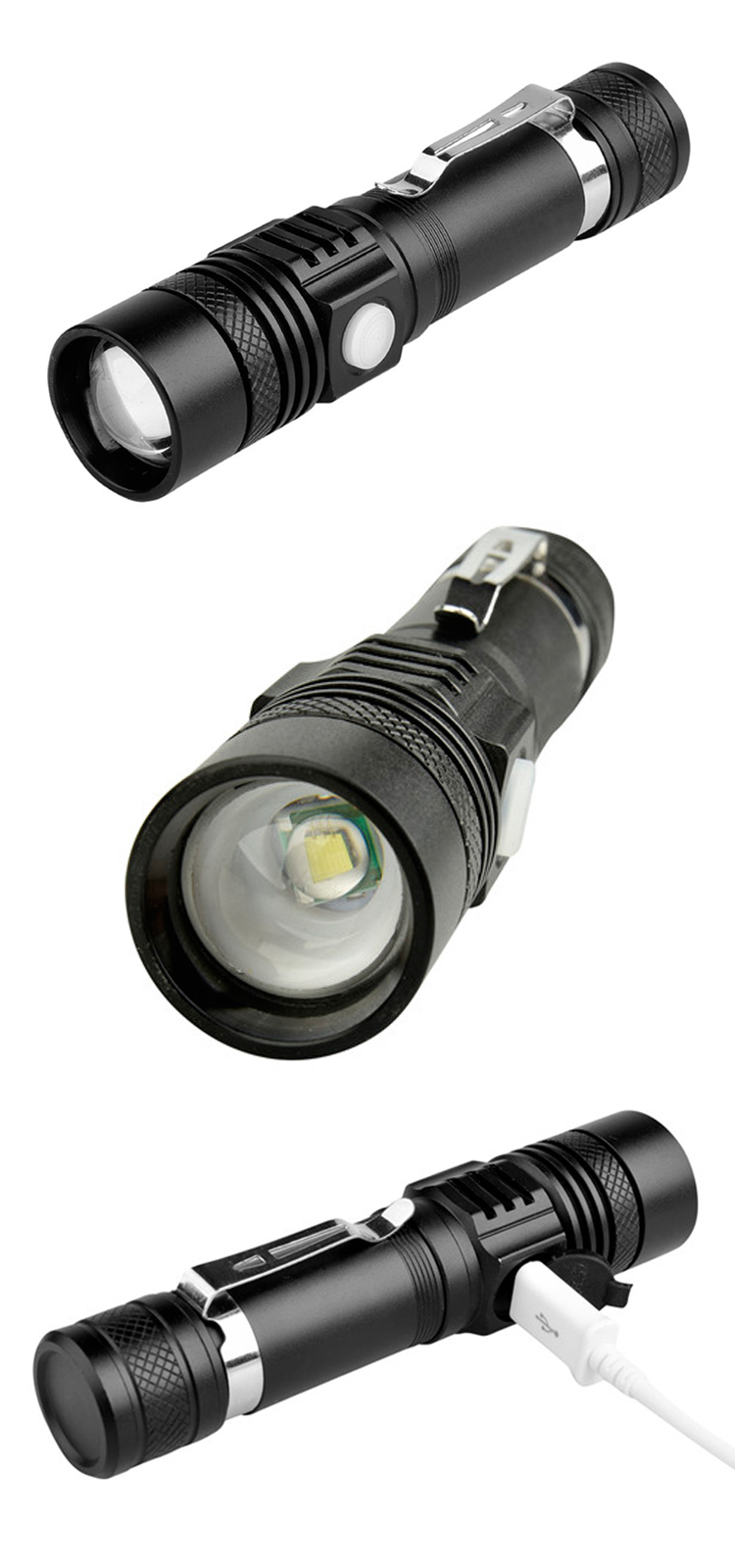 Aluminum Alloy Portable 3 modes Adjustable Focus Flashlight Mini USB Rechargeable Torch