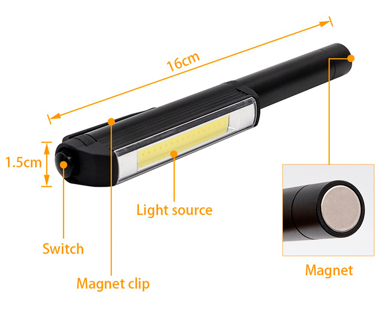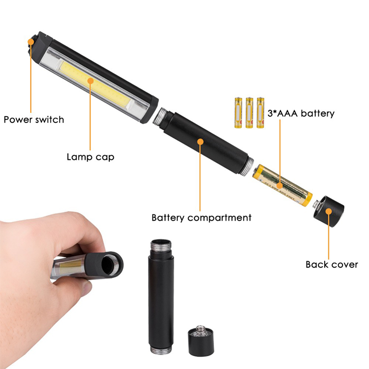 COB LED Car inspection working Light 3AA Battery pen light clip portable slim floodlight flexible magnetic auto working Light