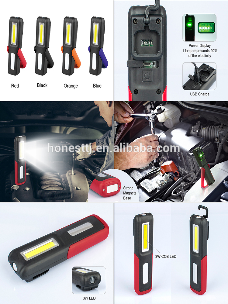 Llanterna LED recarregable portàtil Llums de treball magnètics Ganxo penjant TPR Magnetisme Usb Càmping cob led llum d'emergència del cotxe