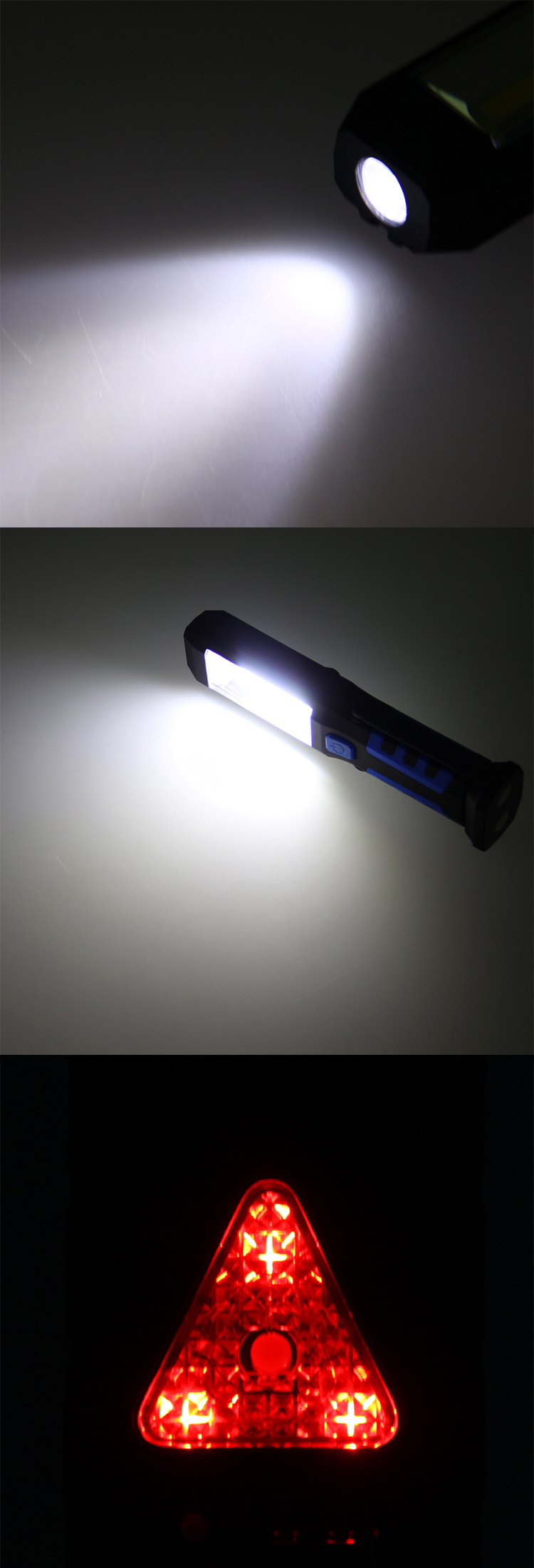 -COB + LED Work Inspection Light:Super Bright White COB Light in the Body to Have Light Around, Extra 1W LED Light Locating On the Top End Makes it a Hand Torch for You at Meanwhile