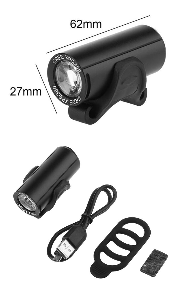 Packing: 1* bike front light 1*USB Cable 1* Bracket 1*bandages