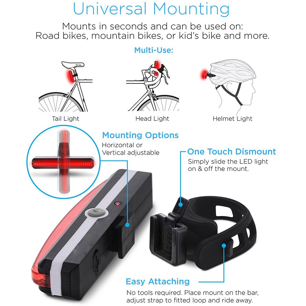 —-Problemloses Aufladen über USB:Mit diesem Fahrrad-Rücklicht sparen Sie Zeit und Geld, das sonst für den wöchentlichen Kauf neuer Batterien aufgewendet würde!Mit einem 500-mAh-Lithium-Akku und superschneller Ladetechnologie bieten unsere wiederaufladbaren, hellen Fahrradlichter stundenlange Nutzung, um sicherzustellen, dass Sie nie gestrandet sind, wenn Sie es am meisten brauchen, und es dauert nur 2 Stunden, bis es vollständig aufgeladen ist!