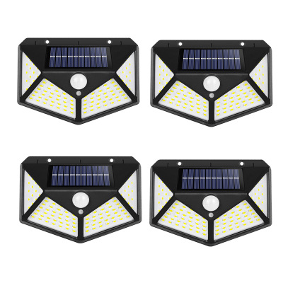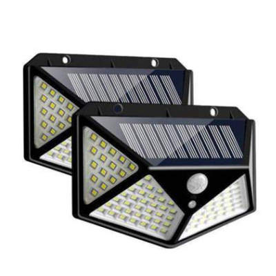 Ηλιακά φώτα εξωτερικού χώρου εξοπλισμένα με 100 σούπερ φωτεινές χάντρες LED, ηλιακούς συλλέκτες μεγάλης επιφάνειας, ισχυρή σφαιρική κεφαλή αισθητήρα προσφέρει ισχυρή ευαισθησία κίνησης έως 9-17 πόδια και γωνία αισθητήρα 120 μοιρών, Διακόπτης τυλιγμένος με ένα στρώμα αδιάβροχου πλαστικού.