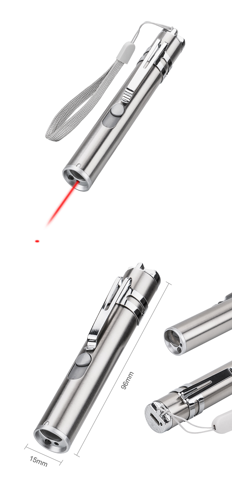 USB reŝargebla neoksidebla ŝtalo gvidis infraruĝan eta poŝlampo lasero uv lumo