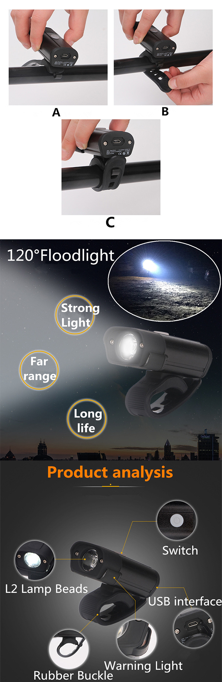 USB kargagarriak aluminiozko bizikleta-faroak 5 engranaje abisua bizikletan ibiltzeko gaueko argi indartsuak