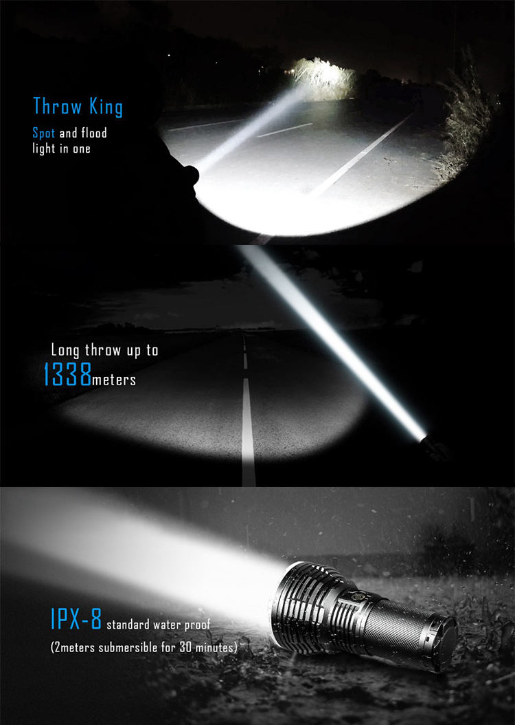 * Utilise une LED américaine XHP35 HI, avec une durée de vie allant jusqu'à 50 000 heures et une puissance maximale de 2 350 lumens.