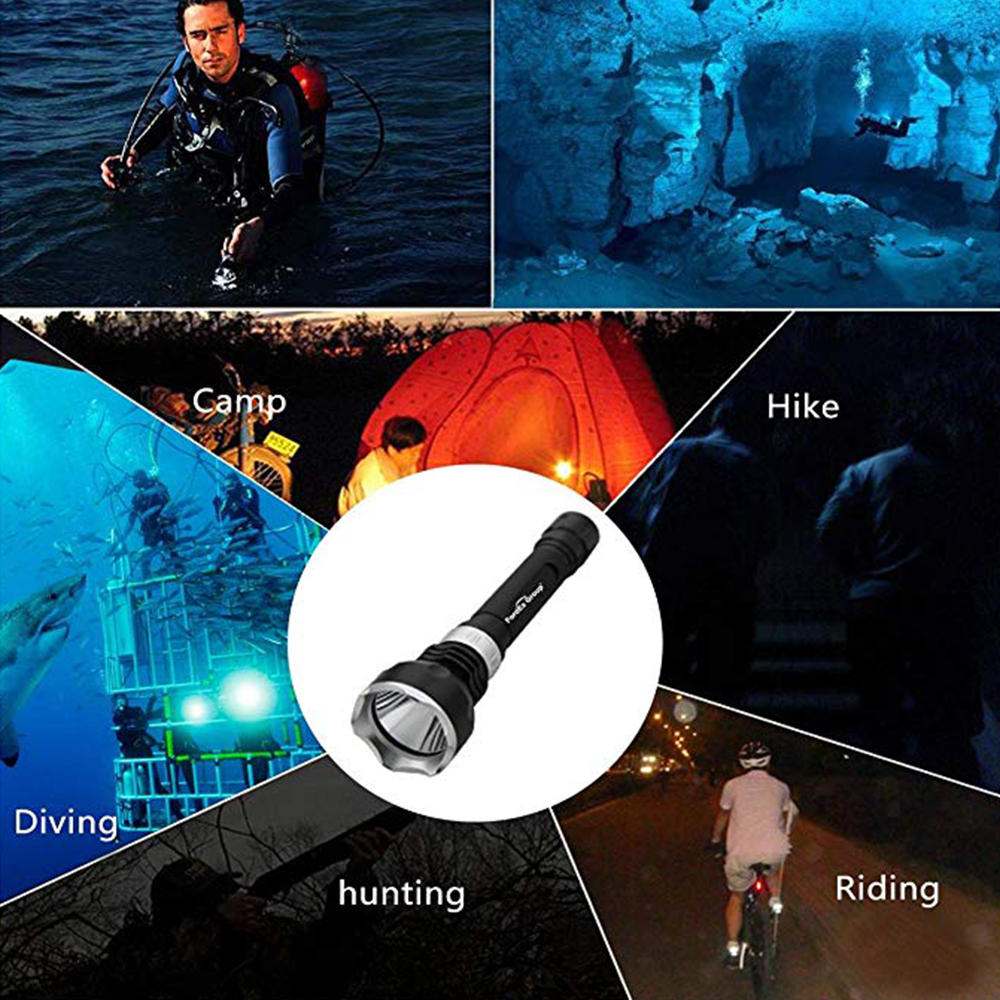 Max Output brightness is about 6000Lumens, Diving of depth can up to 50m.