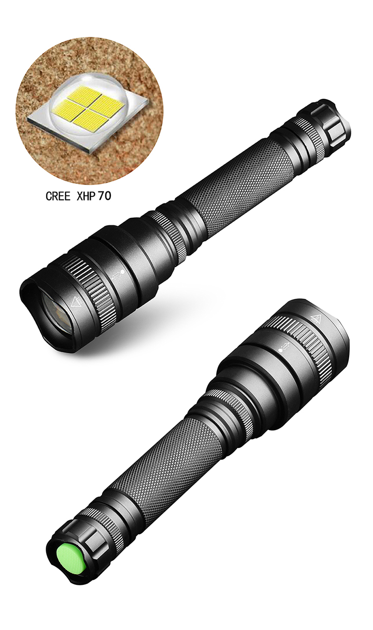Aliminyòm 18650 batri super klere rechargeable dirije reglabl flach