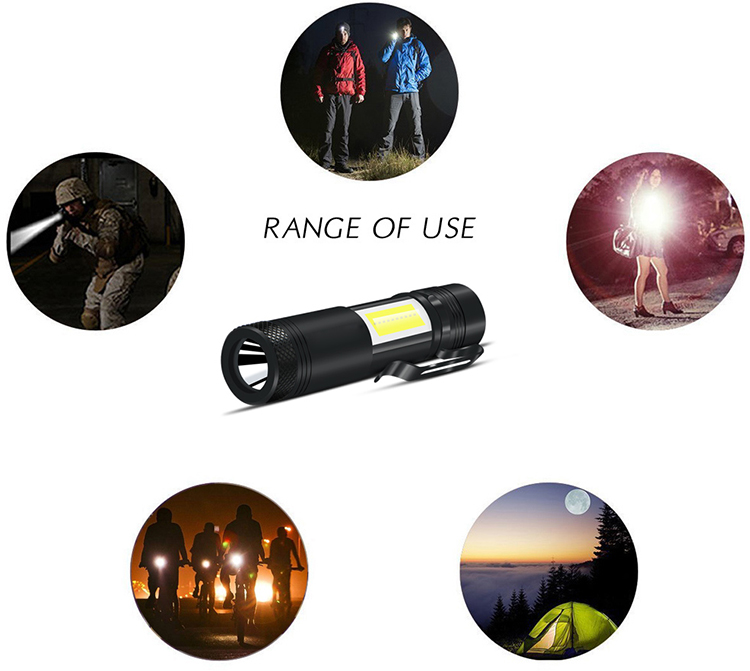 4 Mode: XPE Tinggi- XPE Rendah- COB Tinggi- COB Strobo