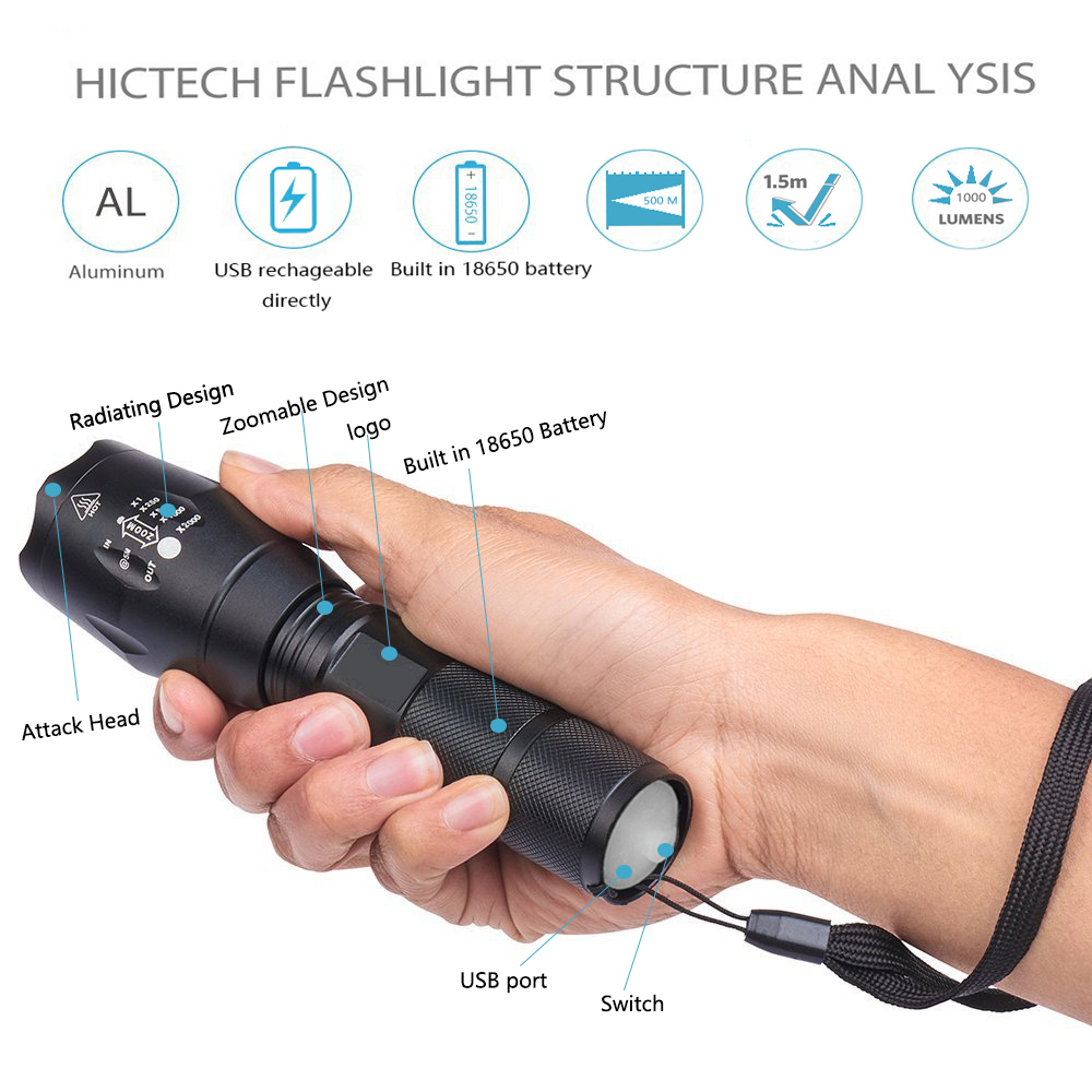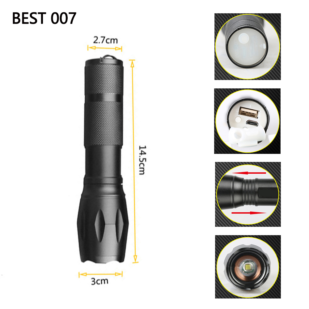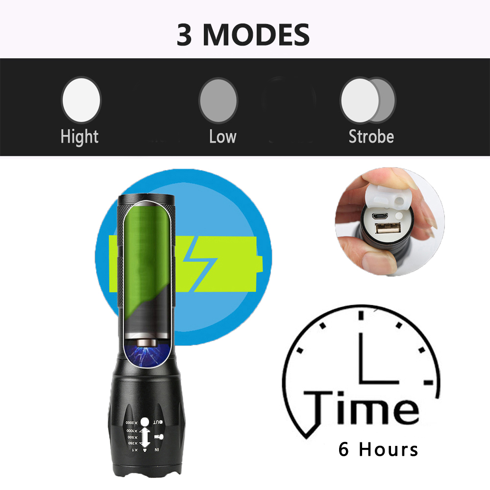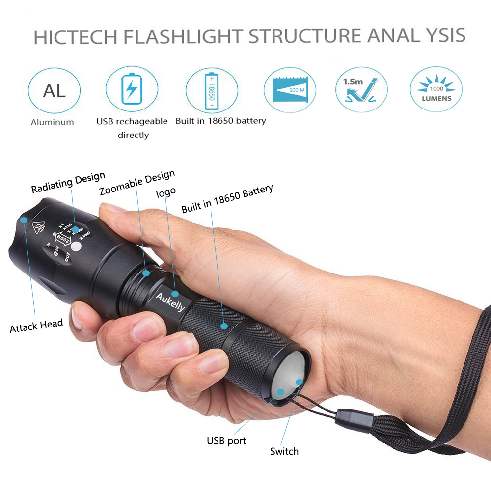 Aukelly High Power Rechargeable L2 Tactical Zoom Telescopic LED torch