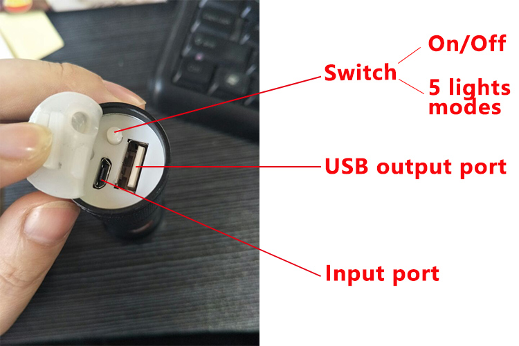 អំពូល LED កង់មានថ្មសម្រាប់ដើរលេង usb led torch