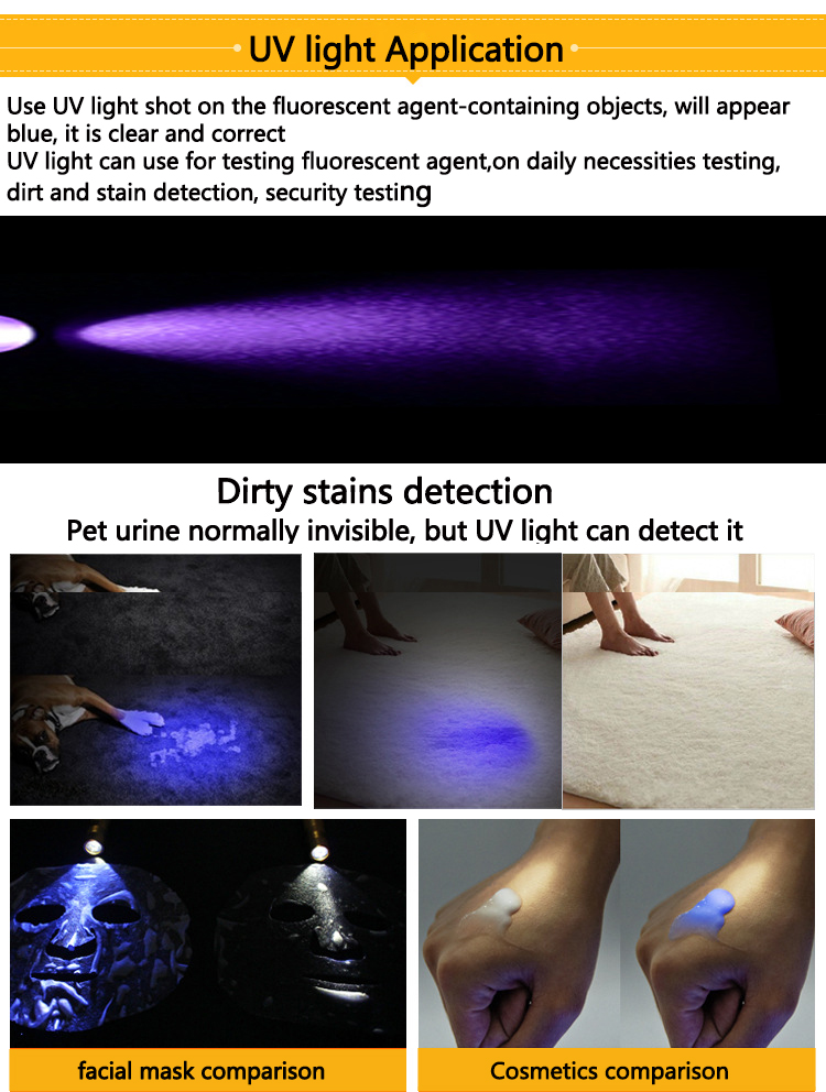គុណសម្បត្តិរបស់យើង។អាចបញ្ចូលថ្មបាន 3 របៀប អំពូល LED ពន្លឺ UV