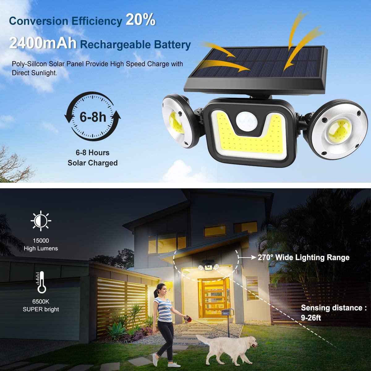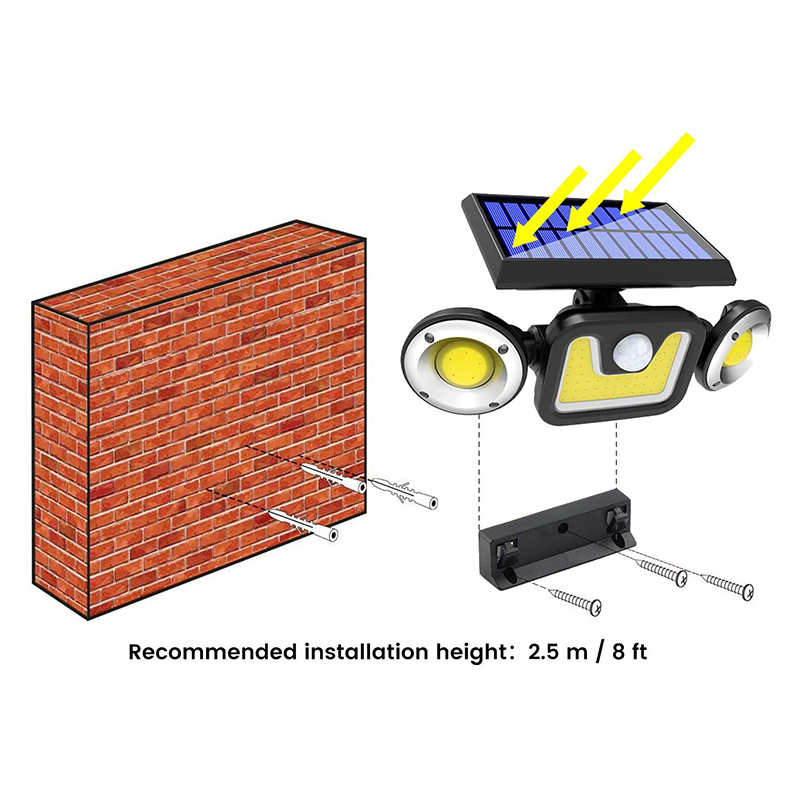 우리의 태양열 센서는 혁신적인 광각 및 3개의 헤드 디자인으로 실외 조명을 비추며 조절 가능한 헤드는 위, 아래 및 수평으로 움직일 수 있습니다.최대 270°의 넓은 조명 각도 및 10-16ft 감지 거리, 조명 헤드 및 모션 센서를 요구 사항에 따라 다양한 각도로 쉽게 조정할 수 있습니다.