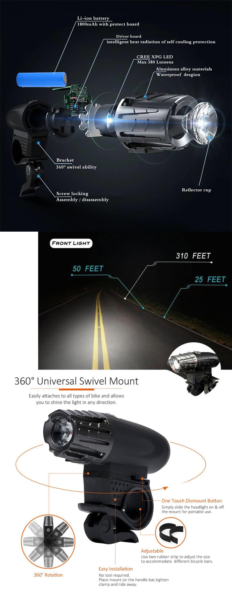 1200 lumen led bike light usb rechargeable bike light mountain bike light