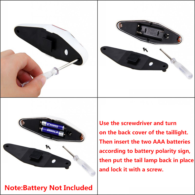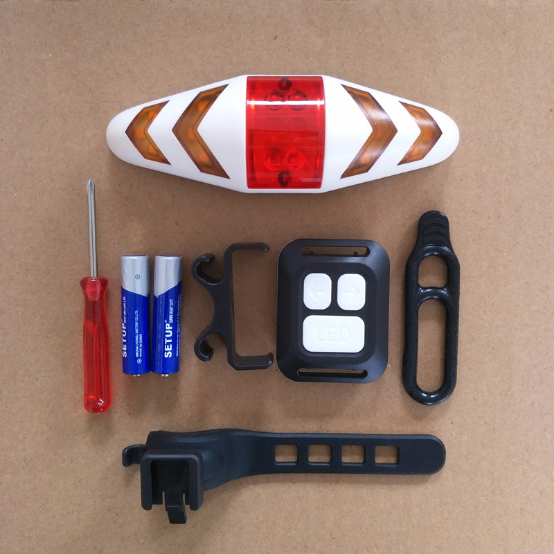3. Tail lights: a switch button, red LED warning light, yellow LED indicator light.