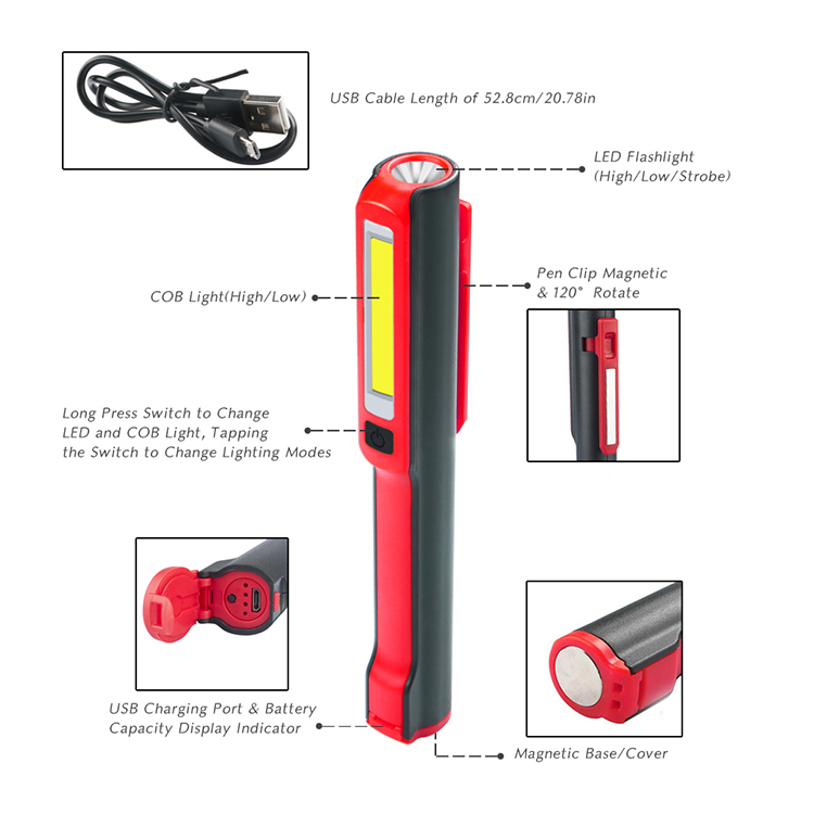 2. BRIGHTNESS & RECHARGEABLE : Max 240 lumen (3W COB) and 80 lumen LED (1W LED) ,meet more lighting needs. Micro USB charger cable is included to recharge.