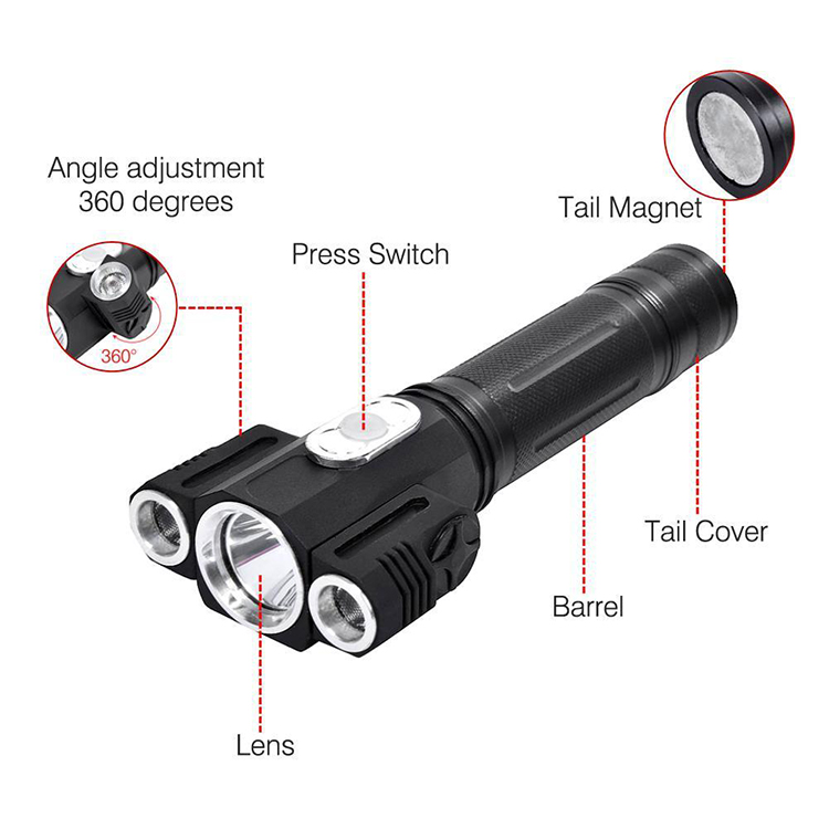 8. Mode Arrangement: 4 mode: 1 light on – 2 lights on – 3 lights on – 3 lights Strobe
