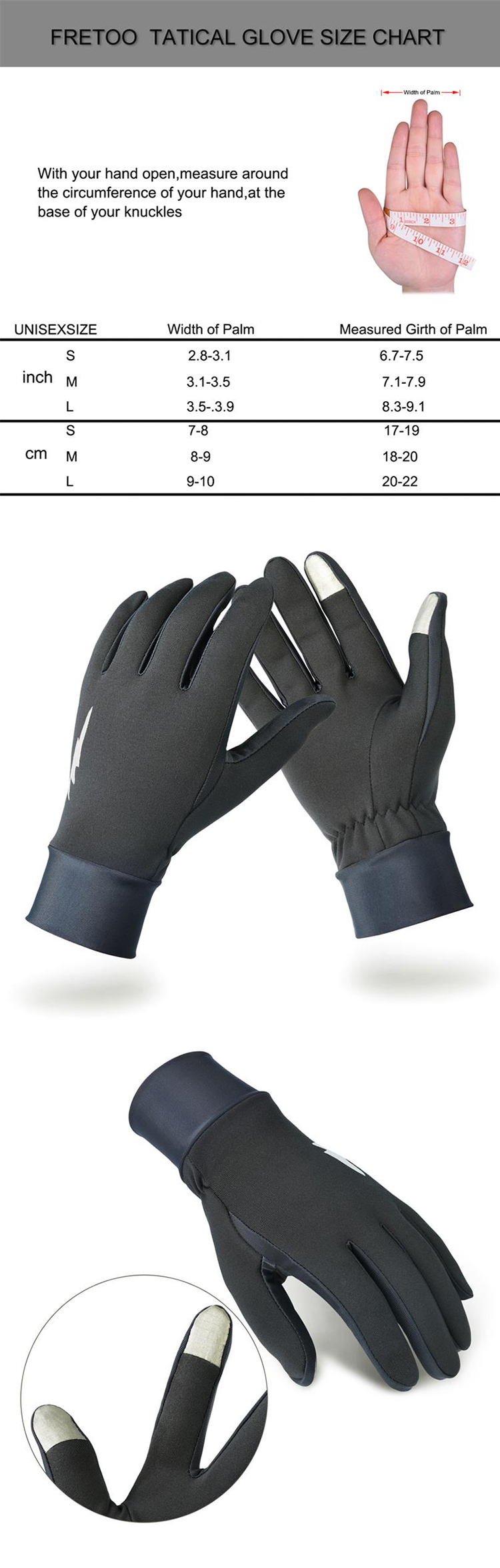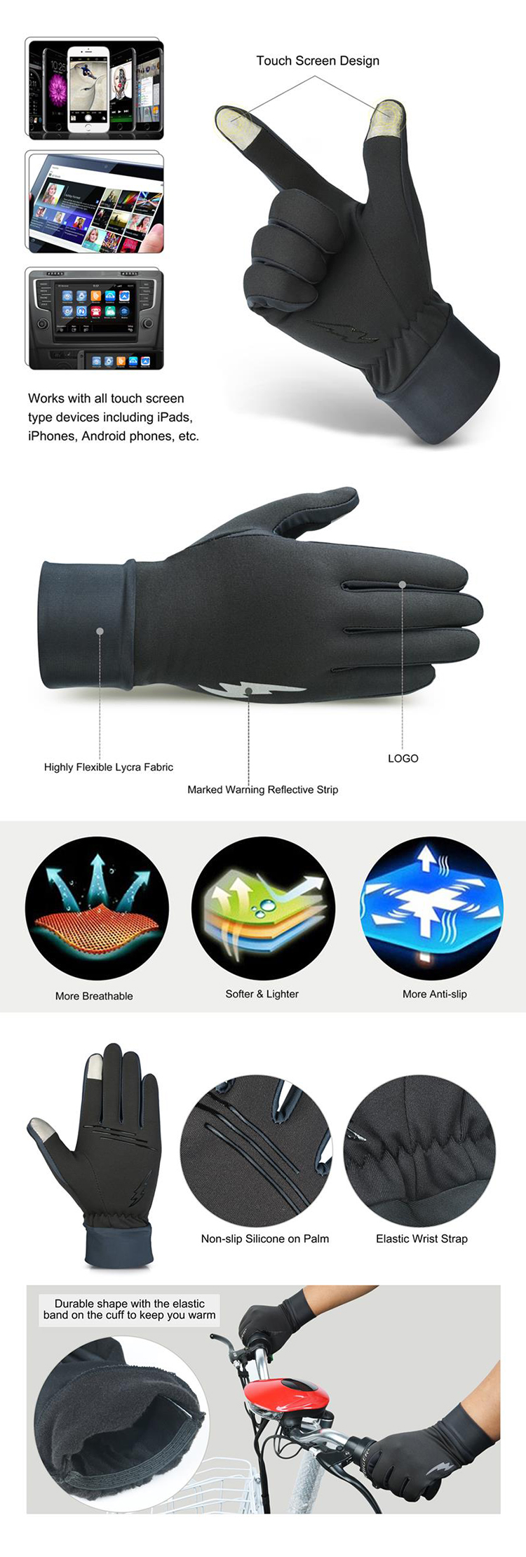 Function: anti-skid, keep warm, light in weight, touchscreen