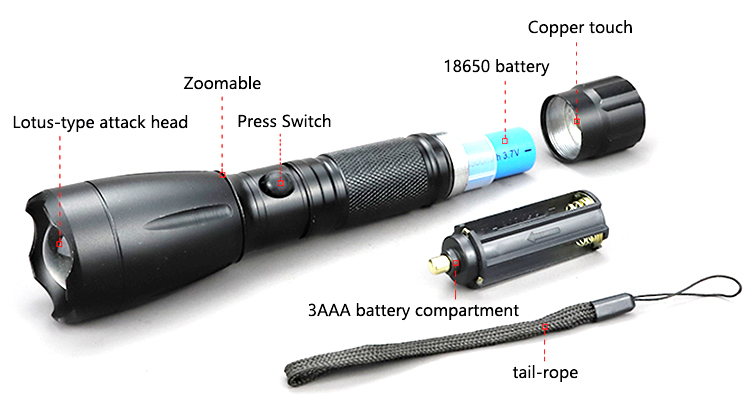 | Baterie: 1*18650 | Material: aliaj de aluminiu |