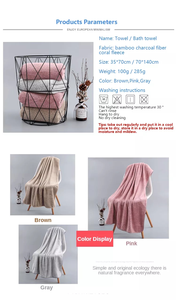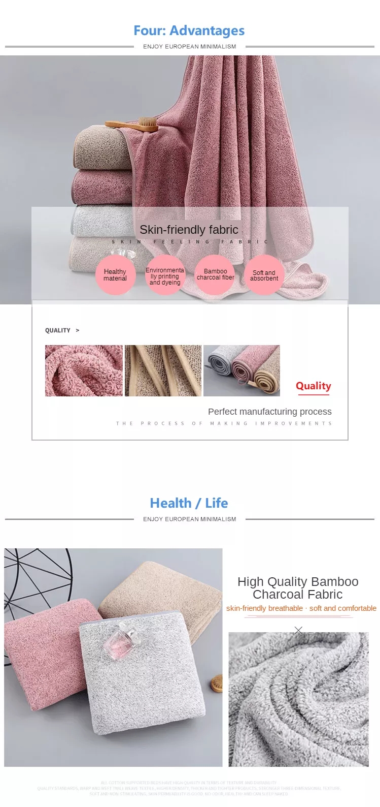 نرم جاذب مائيڪرو فائبر ڪپڙو ٽوال بانس چارڪو ڪورل مخمل غسل توليه بالغن جي گهرن جي باٿ روم ٽوال سيٽن لاءِ