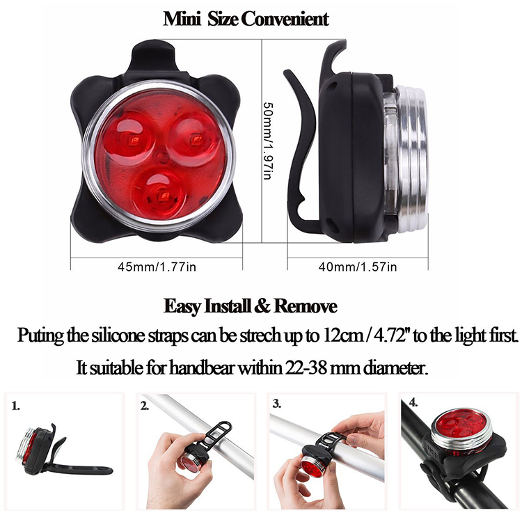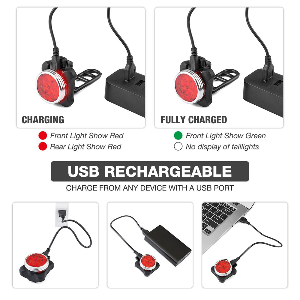 Packing: 1*front bike light, 1*rear bike light, 1 *USB charging cable