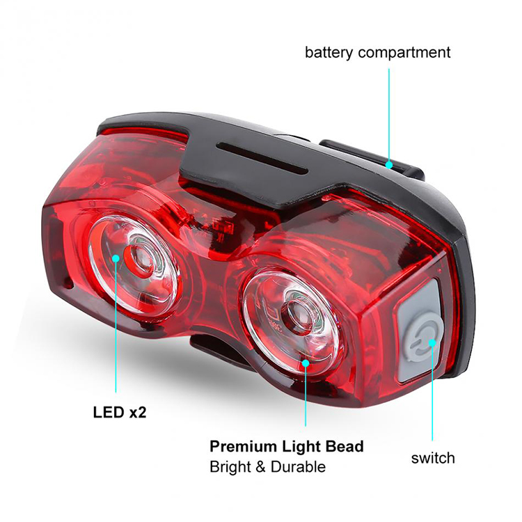 Tillbehör Baklampa 3 läge Vattentät Röd Lykta 2 LED Cykelbakljus MTB Cykling Säkerhetsvarning Blinkande cykelbakljus