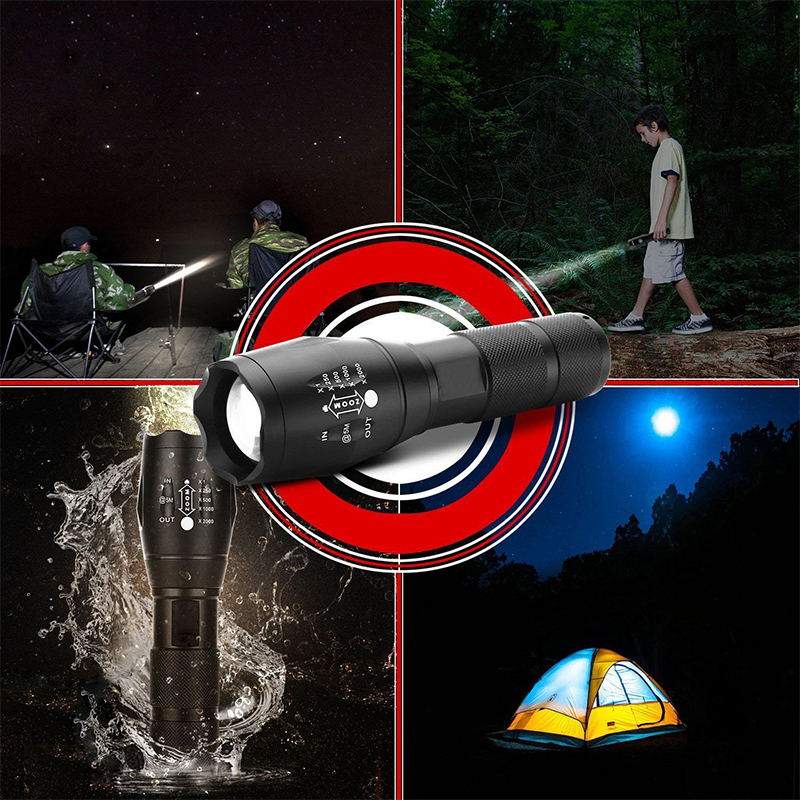 18650 uppladdningsbart batteri eller 3*AAA torrbatteri vattentät stötsäker led ficklampa ficklampa.