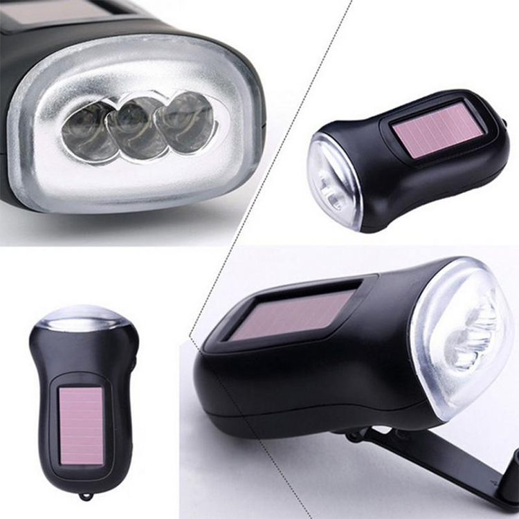 ఆకెల్లీ ఎనర్జీ సేవ్ హ్యాండ్ క్రాంక్ 3 LED డైనమో ఫ్లాష్లైట్ 2 సోలార్ పోర్టబుల్ ఫ్లాష్లైట్