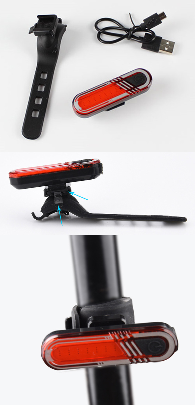 Isang COB bicycle tail light, na may USB cable para i-charge.