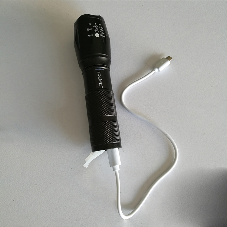 T6 پارقىراق ئۇزۇن مۇساپىلىك USB توك قاچىلاش مەشئىلى لىنتا usb سۇدىن مۇداپىئەلىنىش چىرىغى تېلېسكوپ تاكتىكىلىق قول چىرىغى