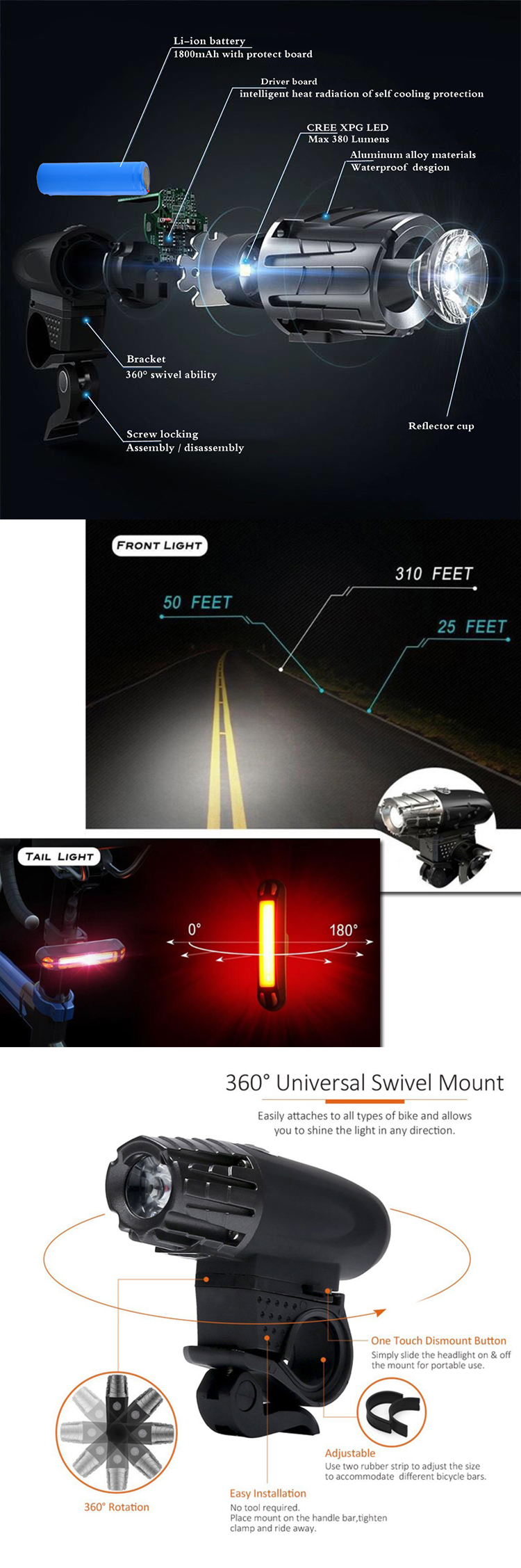 PS: the price in this page is for single bike light(including usb cable) not include tail light, if you need accessories like tail light, please contact me.
