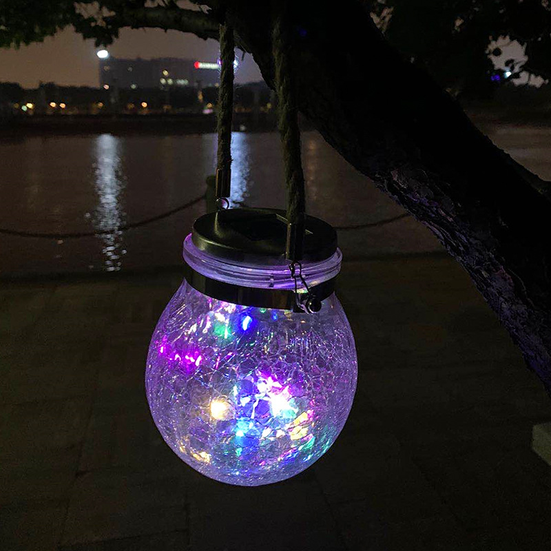 Large Crackle Glass Globe - Outdoor hanging solar lantern auto activate on at every night, exquisite cracked glass ball design