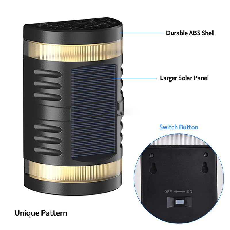This solar wall light uses polycrystalline silicon solar panels. It allows the panels to absorb energy during the day and convert it into light at night. It can be set to automatically turn off during the day and turn on automatically at night.